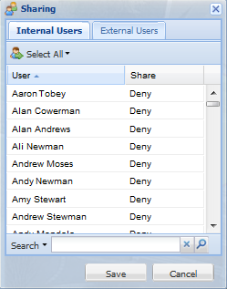 and select Share.The Sharing dialog appears. It lists all other users in your network and each user's Share status for this workspace.